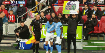 第90+4分钟,瓜迪奥拉在场边投诉对方掷手抛球位置不对