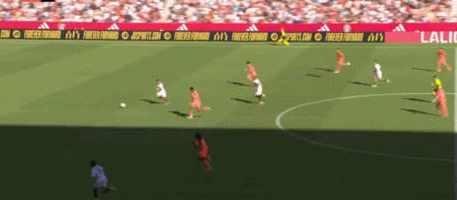 第45+7分钟,佩德里送助攻,拉什福德攻入个人西甲首球!巴萨1-2塞维利亚