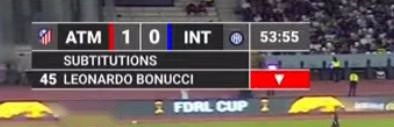 比赛进行到第54分钟的时候,国米进行了一次换人,由卡奇马尔斯基换下了莱昂纳多-博沃,但转播信号中给出的被换下球员却是短暂效力过国米的意大利足球名宿博努奇,而换上的则是另一位此前曾效力过国米的球员埃里克森。