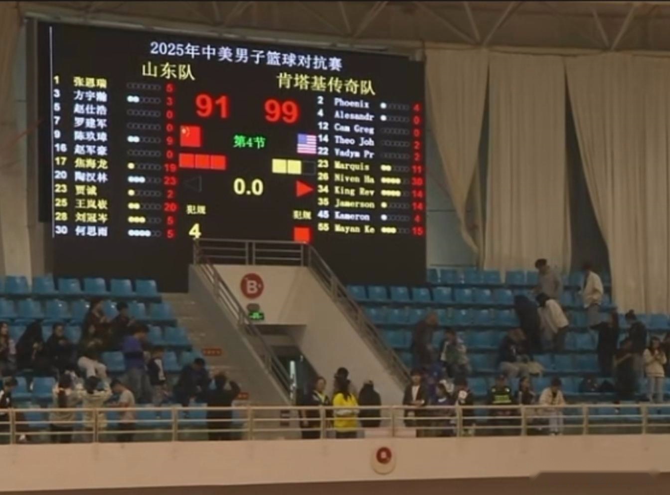 中美对抗赛中,山东全运队(成年组)以91-99不敌美国肯塔基传奇队,未能赢得比赛。这场比赛山东在前三节不断被对手拉开分差,当然末节他们还是可以尽可能去咬回一些分差,可惜最后时刻对手还是可以稳住局势,山东依然输掉了这场比赛。