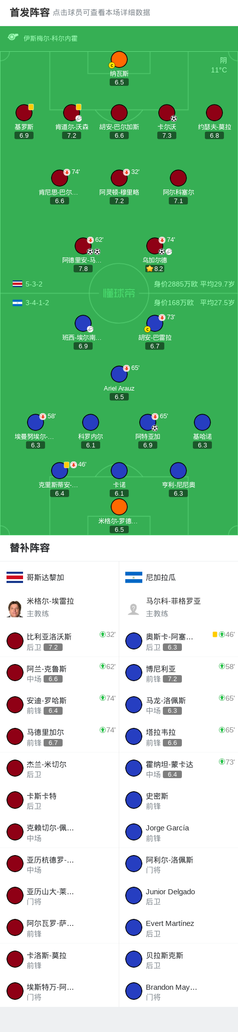 第28分钟,哥斯达黎加球员肯道尔-沃森助攻阿德里安-马丁内斯打入一球。