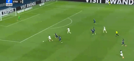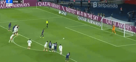 第27分钟,扳平比分,帕尼切利头槌破门,斯特拉斯堡1-1