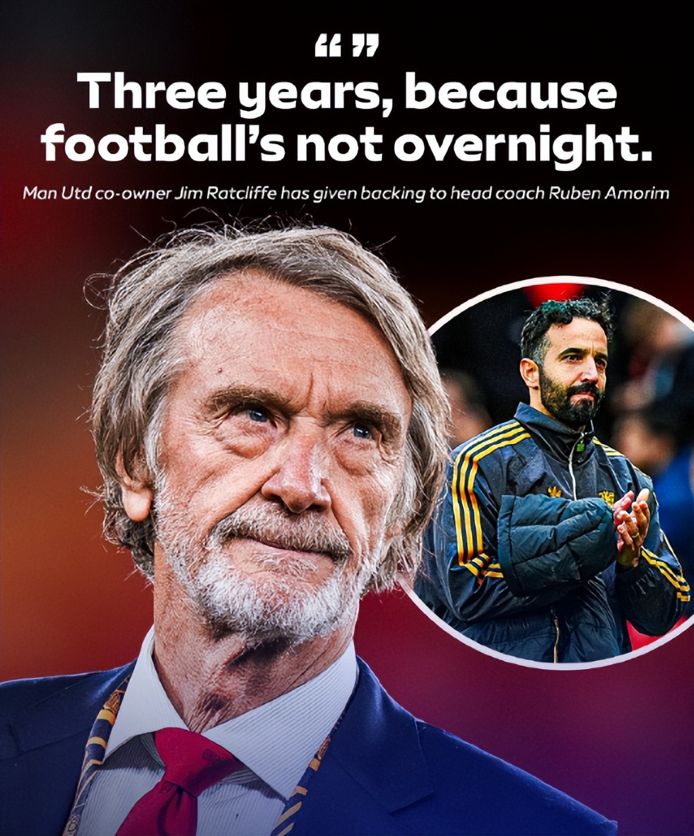 10月初接受采访时,拉特克利夫表示,“阿莫林需要三年时间来证明自己是一位出色的教练,这是我的立场。”拉特克利夫甚至以弗格森、阿尔特塔为例来证明计划的重要性。