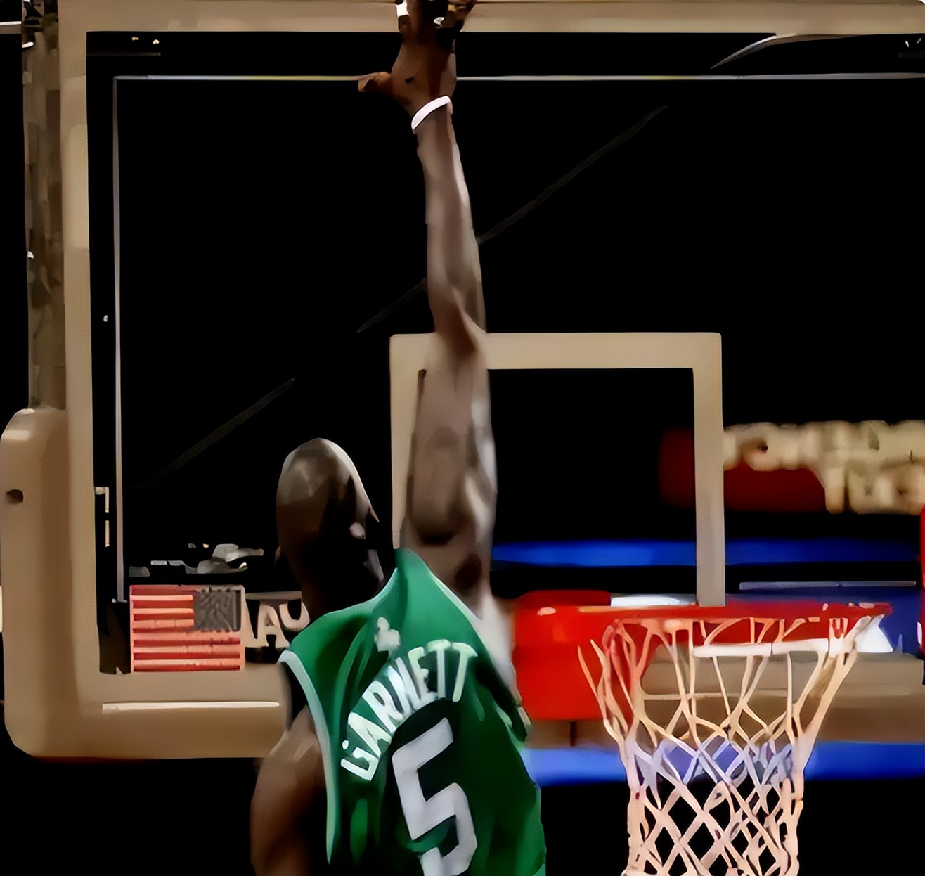 篮板上沿3米95,至今NBA没人做到。而之所以说加内特可以做到,还是因为他当年人气太高,加上他又是早期模型怪之一,给人感觉他是无所不能。加内特确实强,但弹跳绝对算不上顶级,他就是极限弹跳1米都没有。以他身高+臂展+弹跳,能头超框就极限了,摸篮板上沿差了很远。目前也就文班亚马有希望,除了他,NBA其他人都做不到。