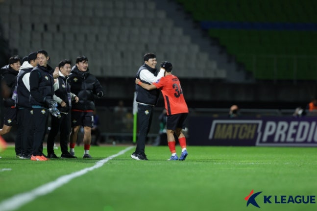 比赛结束前,江原利用一次角球机会,门前混战的金健熙将球射入球网。这位在日本联赛效力郁郁不得志的球员,本赛季夏季转会到江原后找回了属于自己的比赛节奏,也为江原锁定了胜局。
