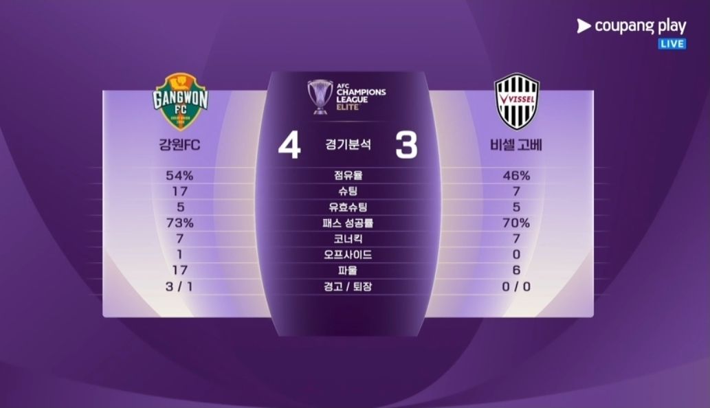 最终,江原FC主场4-3击败对手,送给了对手首败的同时,也让自己主场亚冠保持全胜的记录。对于首度参加亚冠精英联赛的江原FC来说,如此表现,已经足足为K联赛挣回了面子!