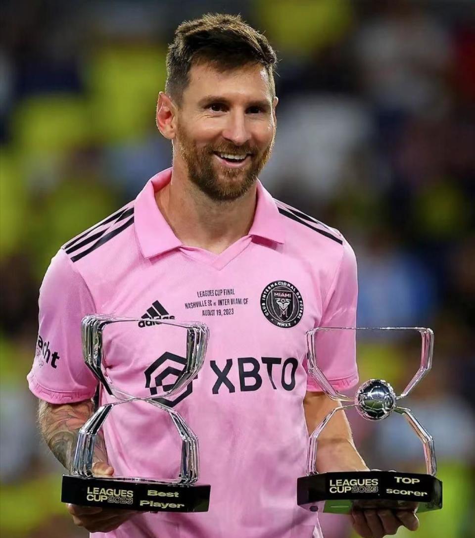 2023年7月15日,在离开巴黎圣日耳曼之后,梅西以自由身加盟迈阿密国际。在为迈阿密国际出场的前7场比赛里,梅西场场破门,打入10球送出1次助攻,帮助迈阿密国际赢得北美联赛杯,这是迈阿密国际队史首座奖杯。