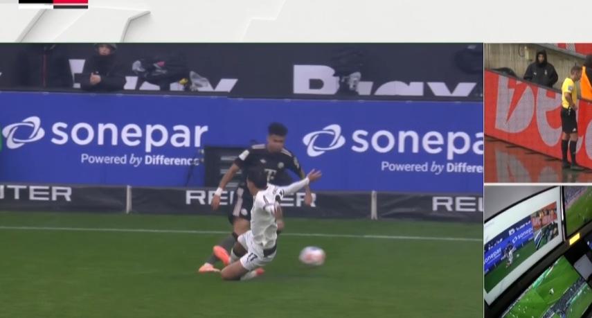 比赛的第15分钟,卡斯特罗普边线飞铲迪亚斯,主裁判并未第一时间出示红牌,这让拜仁教练、球员非常不满,孔帕尼、诺伊尔、塔都起身向第四官员抗议。