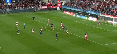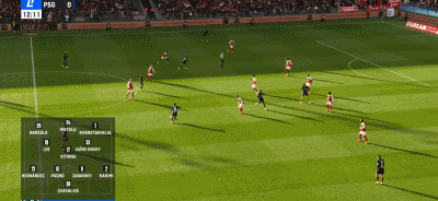 第29分钟,维蒂尼亚挑传禁区,阿什拉夫破门得分,巴黎客场1-0领先