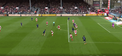 第90+5分钟,终于进了,杜埃两次中柱后单刀破门,巴黎客场3-0