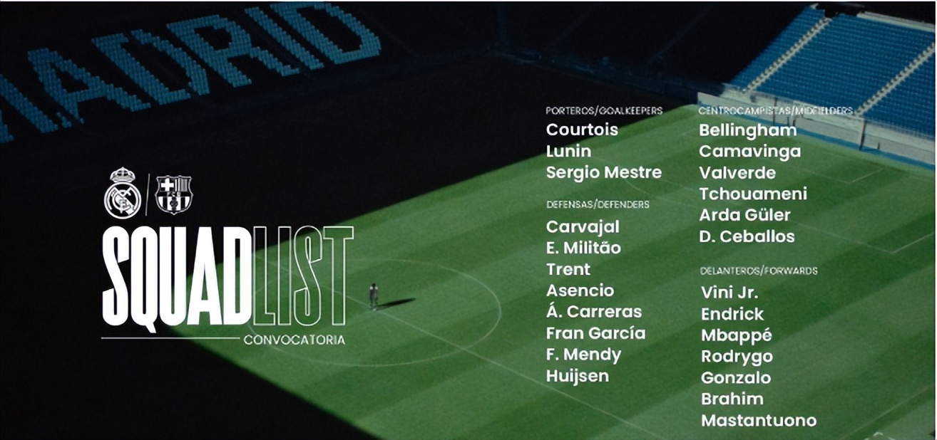 皇马VS巴萨:阿诺德复出 居莱尔+贝林厄姆领衔中场 最强三叉戟冲锋