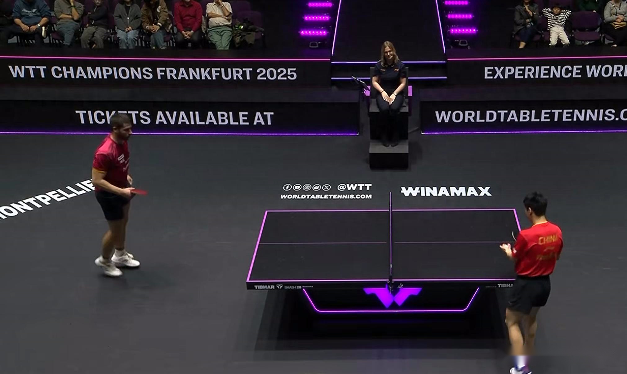 法国蒙彼利埃站冠军赛男单第一轮,国乒选手向鹏对战德国老将弗朗西斯卡。