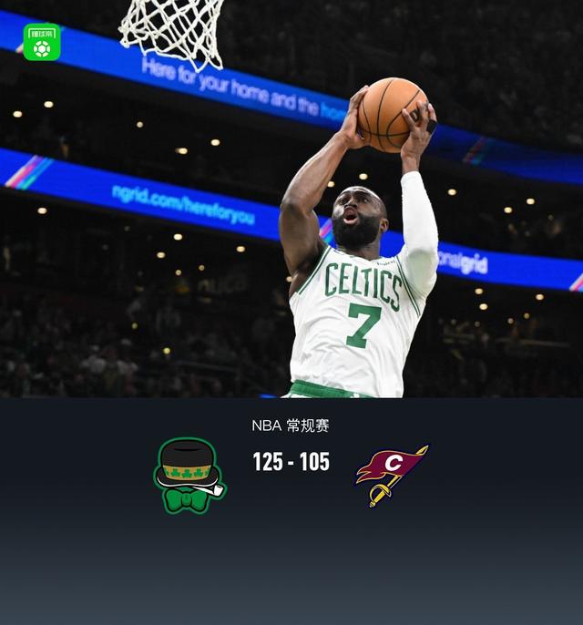 第四节凯尔特人普里查德拿下7分,骑士埃文-莫布利拿下10分,最终凯尔特人125-105战胜骑士