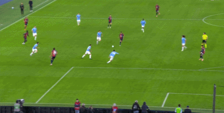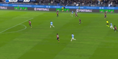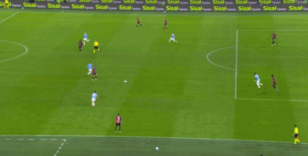 第90+1分钟,扎卡尼禁区内一对一晃开角度劲射破门,拉齐奥2-0卡利亚里