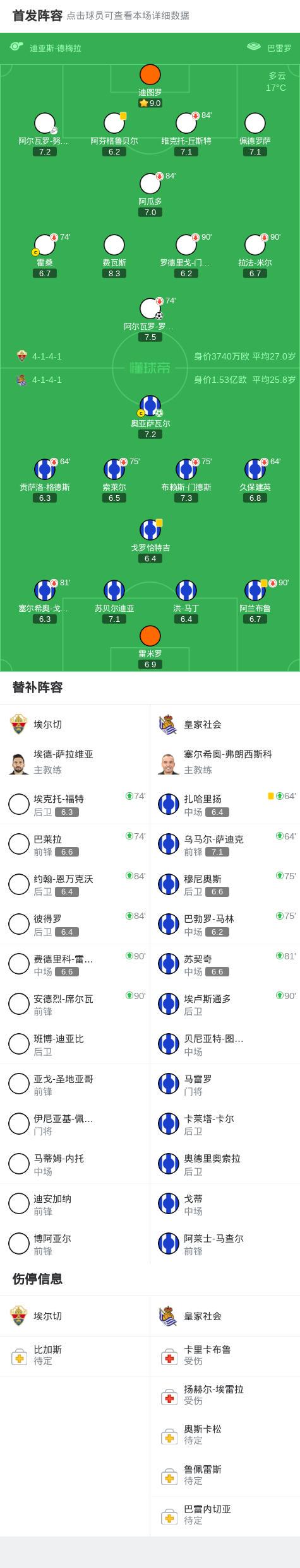 埃尔切1-1皇家社会,阿尔瓦罗-罗德里格斯打破僵局,奥亚萨瓦尔救主