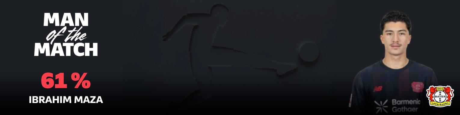 北京时间11月9日,勒沃库森在德甲第10轮的比赛中主场6-0大胜海登海姆,赛后此战首发打满全场并且完成梅开二度的药厂19岁中场易卜拉欣-马扎当选德甲官方全场最佳球员。