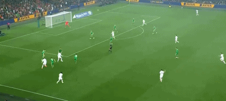 第48分钟,错失良机,维蒂尼亚门前无人防守射门踢疵