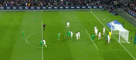 第9分钟,C罗任意球直接射门,皮球击中人墙