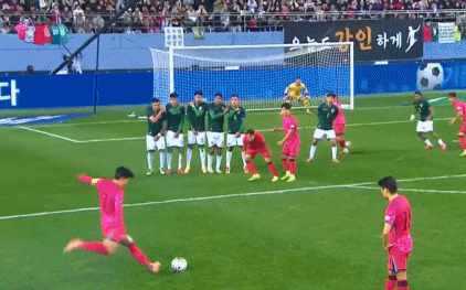 在国际足球热身赛里,韩国对阵玻利维亚。孙兴慜主罚任意球破门,打入世界波!
