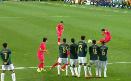 尽管占据主动,但韩国队迟迟无法打破僵局。比赛的第56分钟,韩国队获得禁区前左侧任意球,孙兴慜主罚任意球右脚劲射,皮球划出美妙弧线之后坠入死角。