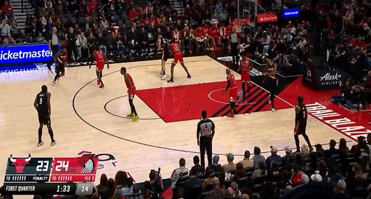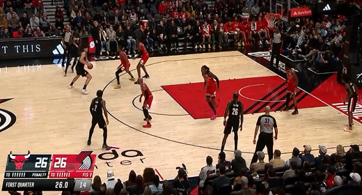 第一节,开场公牛武切维奇率先中投命中,但随后开拓者克林根内外全开连得5分,紧跟卡马拉、阿夫迪亚再度得分,整体一波10-0取得10-2领先,随后公牛武切维奇、威廉姆斯三分止血,开拓者格兰特、卡马拉三分回应,但武切维奇手感火热中远投命中追至3分分差,后半节上来开拓者阿夫迪亚连续得分再度拉大至8分分差,节末还剩4分多钟杨瀚森替补登场,上来尝试三分不中,随后连续积极拼抢前场板帮助球队获得球权,公牛抓住反击连中三分追至1分分差,杨瀚森低位单打勾手拿下2分,节末段再度助攻格兰特三分命中,首节结束,开拓者29-28公牛。