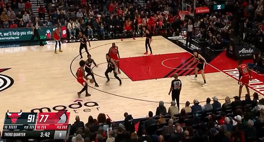 第三节,上来公牛奥科罗连续两记三分拉开分差,开拓者阿夫迪亚、格兰特联手得分给予回应,但紧跟公牛武切维奇、基迪相继三分再度拉大至9分,开拓者格兰特、乐福艰难得分止血,随后公牛基迪、奥科罗连续三分将分差拉大至16分,节末段杨瀚森替补登场,上来补防便被对手晃起打成2+1,随后反击快下遭大帽,单打再度被段,三节结束,公牛98-82开拓者。