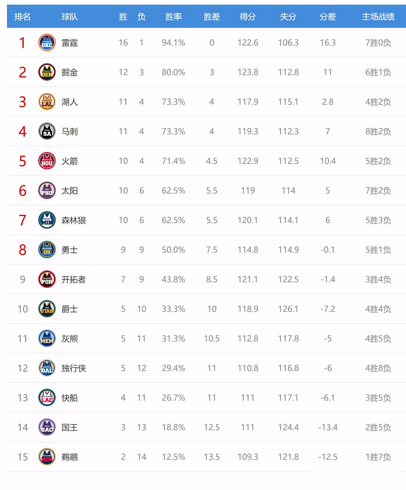 北京时间2025年11月22日,今日NBA有9场比赛,勇士、火箭、掘金、雷霆、独行侠、开拓者、森林狼、太阳、爵士、鹈鹕参与其中,赛后西部排名发生了很大变化。