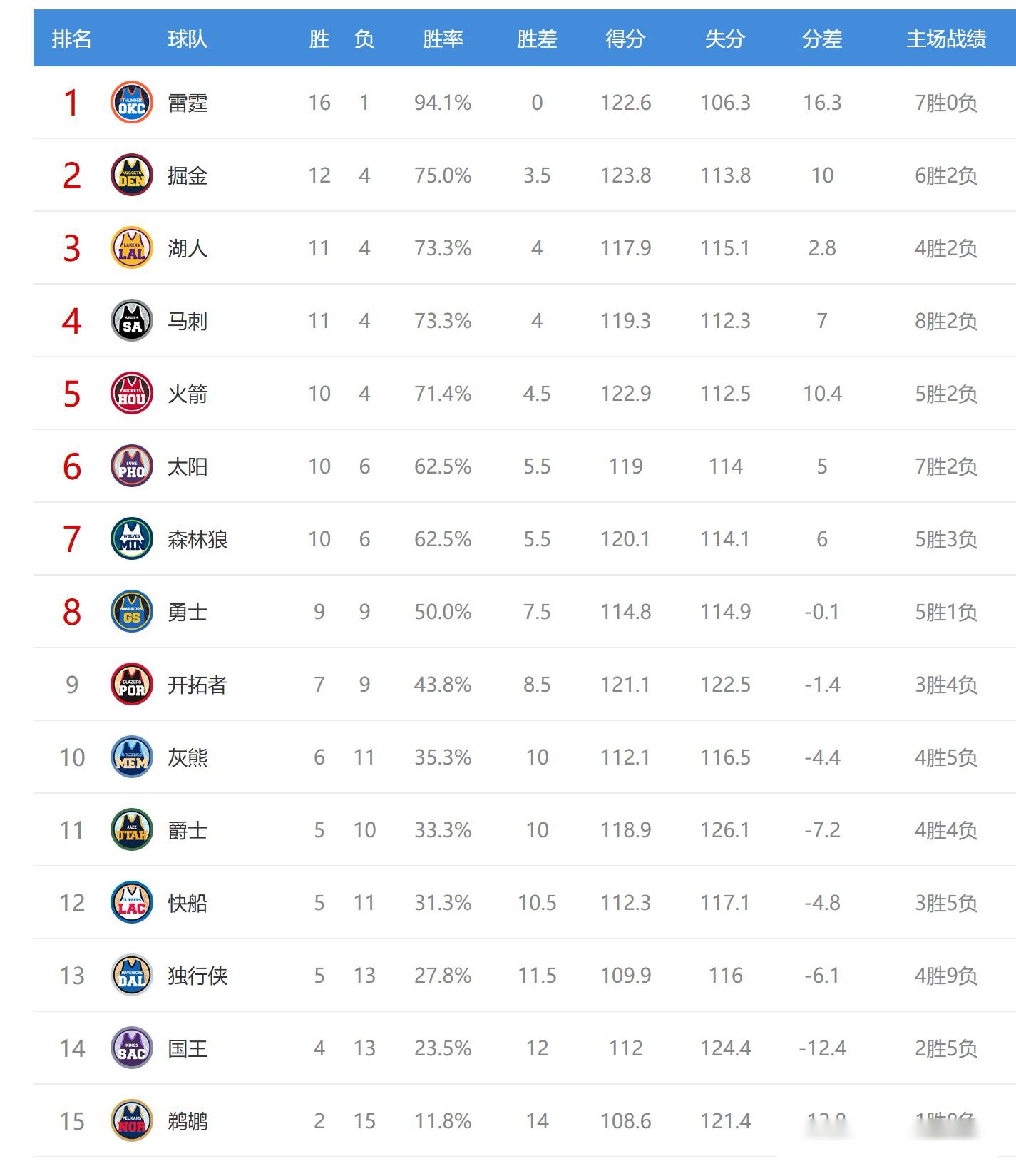 北京时间2025年11月23日,今日NBA有7场比赛,快船、掘金、独行侠、灰熊、国王、鹈鹕参与其中,赛后西部排名发生了变化。