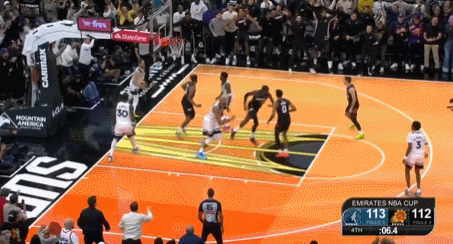 然而就在一分钟之后,太阳队将分差追剩了1分。主帅乔丹-奥特在暂停中将这个关键一攻的战术布置给了吉莱斯皮。