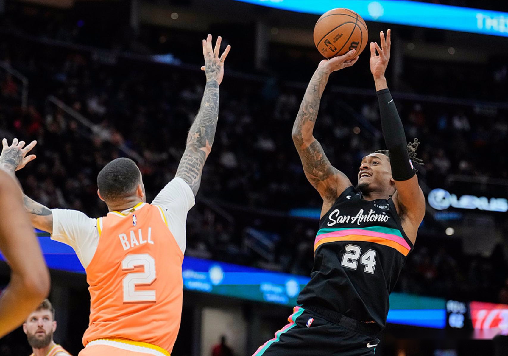 马刺客场挑战骑士,马刺少了文班、卡斯尔、科内特,骑士少了加兰、阿伦、斯特鲁斯,上半场比赛马刺取得8分领先,下半场比赛骑士完胜马刺,最终骑士以13分优势击败马刺。米切尔17中9得到28分2板8助,泰森15中11得到24分6板2助2帽,马刺方面福克斯19中9得到25分5板9助,瓦赛尔16中8得到28分3板3助。