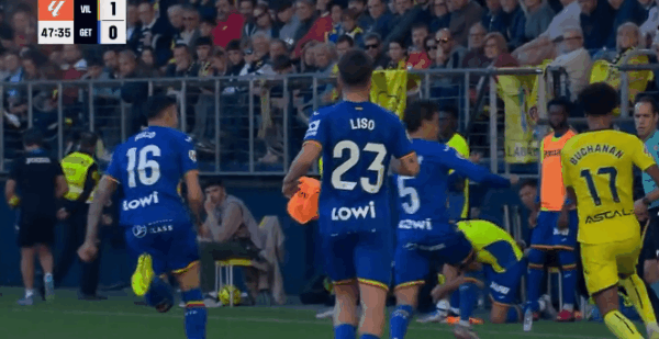 比赛中,当值主裁判马特奥-布斯克茨做出了一个令赫塔费全员极其愤怒的判罚。