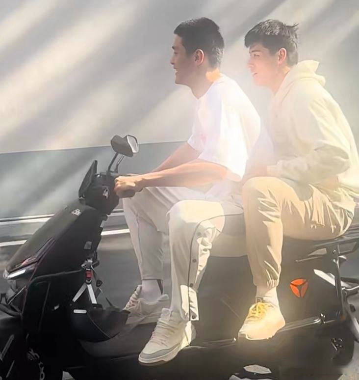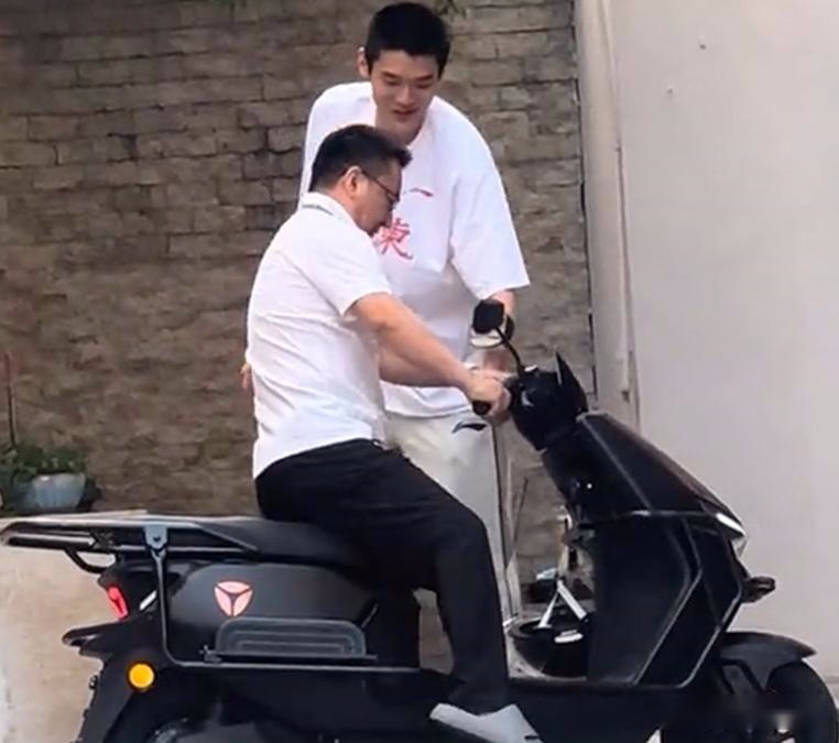 刚打完杯赛王洪泽陈家政速买电瓶车,骑回基地似乎有点不熟练!