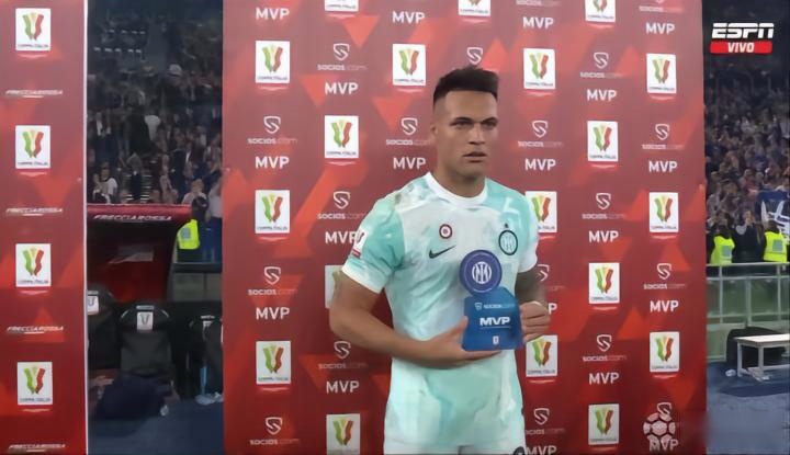 劳塔罗的梅开二度帮助国米在本赛季的意大利杯决赛中2-1逆转战胜佛罗伦萨,成功卫冕该项赛事的冠军,赛后这位阿根廷球星也当选了官方本场比赛的MVP。