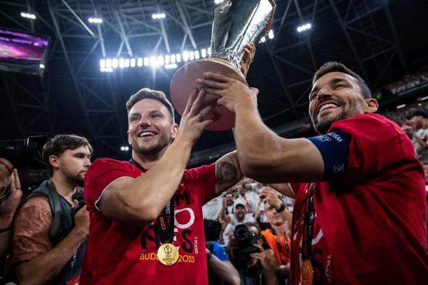 “鸟叔”赛前倒是对门迪利瓦尔很客气,一来对方是忠厚长者,二来资历上和自己实在差太远。穆里尼奥自己也是个年过花甲的长者,很多事都看开了。而两个老头带的这两支球队也有不少老将,尤其以塞维利亚这边更突出。35岁的拉基蒂奇打满全场,个人判断失误造成丢球,随后一脚远射中柱。他是队中成就最高的球员,欧冠、欧联、西甲都拿过,世界杯拿过亚军。上次带领塞维利亚拿欧联杯已是9年前,也是点球大战取胜(本菲卡)。他那时候就是队长,获得赛事最佳球员,恍如隔世。36岁的费尔南多几乎踢满全场,最后时刻被霍尔丹换下。37岁的纳瓦斯也坚持到了加时赛。这几位赢了上次决赛的老将是门迪利瓦尔的底气,是经验上击败穆里尼奥这个冠军教练的保障。