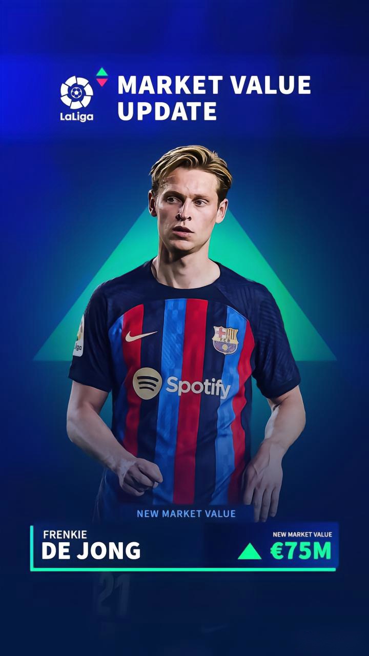 虽然莱万身价下跌,但作为西甲冠军的巴萨整体身价上涨了3200万欧,达到7.99亿欧。这主要得益于弗朗基-德容(上涨1500万欧至7500万欧)、拉菲尼亚(上涨1000万欧至6000万欧)、巴尔德(上涨2000万欧至5000万欧)、克里斯滕森(上涨1000万欧至4000万欧)等球员的身价上涨。