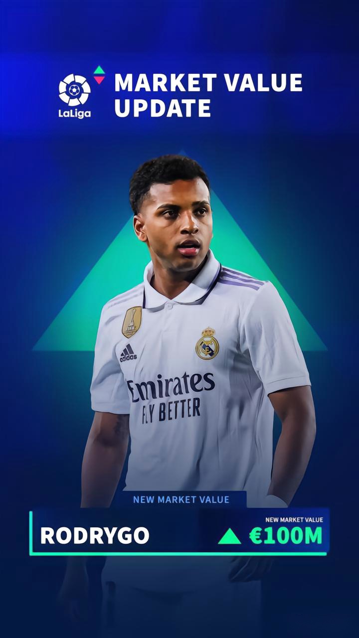 德国转会市场网站更新了西甲球员身价,维尼修斯上涨至1.5亿欧,罗德里戈成为新的亿欧身价先生。