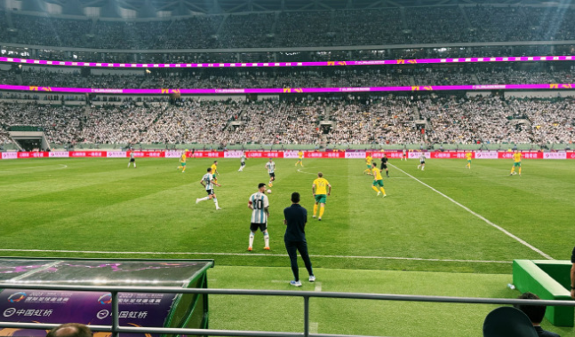阿根廷队和澳大利亚的热身赛结束争夺,最终新科世界杯冠军在工体以2-0完胜对手,继卡塔尔世界杯1/8淘汰赛之后双杀澳大利亚。这场比赛梅西开场81秒闪击,个人职业生涯的最快进球纪录诞生。阿根廷队的世界杯最佳门将马丁内斯上演神扑。下半场,替补上场的佩泽拉头球破门,效力于曼联的小将加纳乔上演阿根廷队首秀,他还把皮球踢爆了。