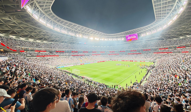 赛后梅西谢场,向四周鼓掌致谢,感谢球迷支持,这次来到北京,梅西感受到了疯狂的、热情的中国球迷们。工体现场的球迷们也给予了巨大的欢呼声,支持梅西。