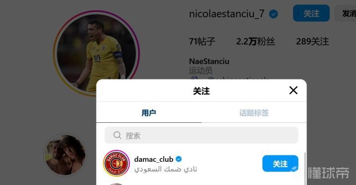 此前据罗马尼亚媒体消息表示,斯坦丘将加盟沙特联赛球队达马克队,目前斯坦丘社媒已经关注达马克队官方账号。