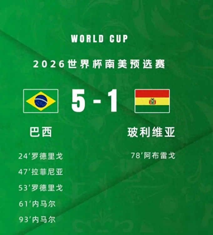 你怎么看世预赛南美区巴西5比1大胜玻利维亚的比赛?欢迎在评论区讨论。注:图片来源于网络。