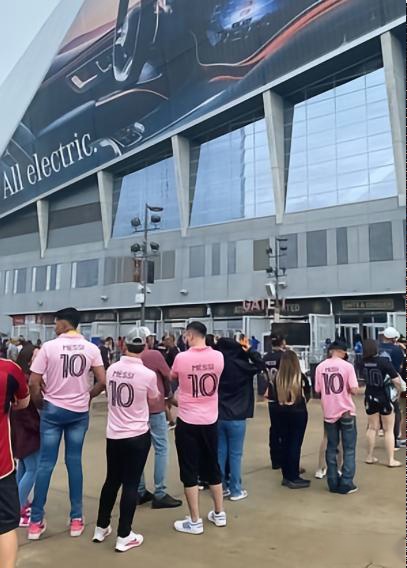 在亚特兰大联的主场梅赛德斯奔驰体育场外,随处可见穿着粉色迈阿密国际球员的球迷,但在本场比赛,梅西因肌肉疲劳没有前来。