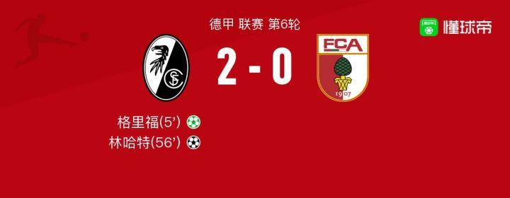 弗赖堡vs奥格斯堡球员评分:格里福8.1分,格雷戈里奇5.8分