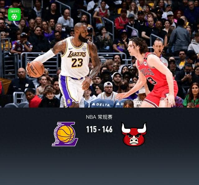 湖人115-146惨败公牛跌至西部第4,詹姆斯复出17+6,东契奇34分7失误